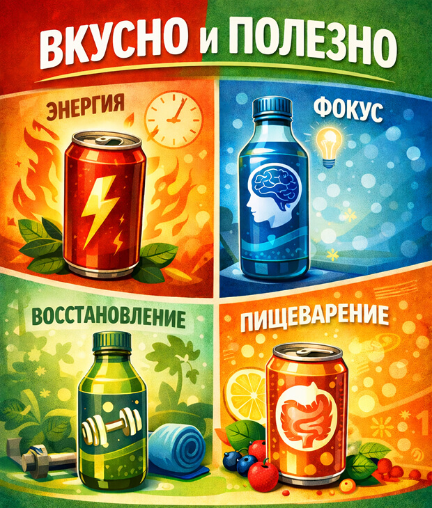 В категории напитков сценарное позиционирование ещё более критично. Один и тот же функциональный напиток может закрывать разные задачи в разное время суток: утром — фокус и энергия, днём — восстановление после нагрузки, вечером — расслабление без алкоголя. Это не три продукта, это три сценария потребления одного продукта.